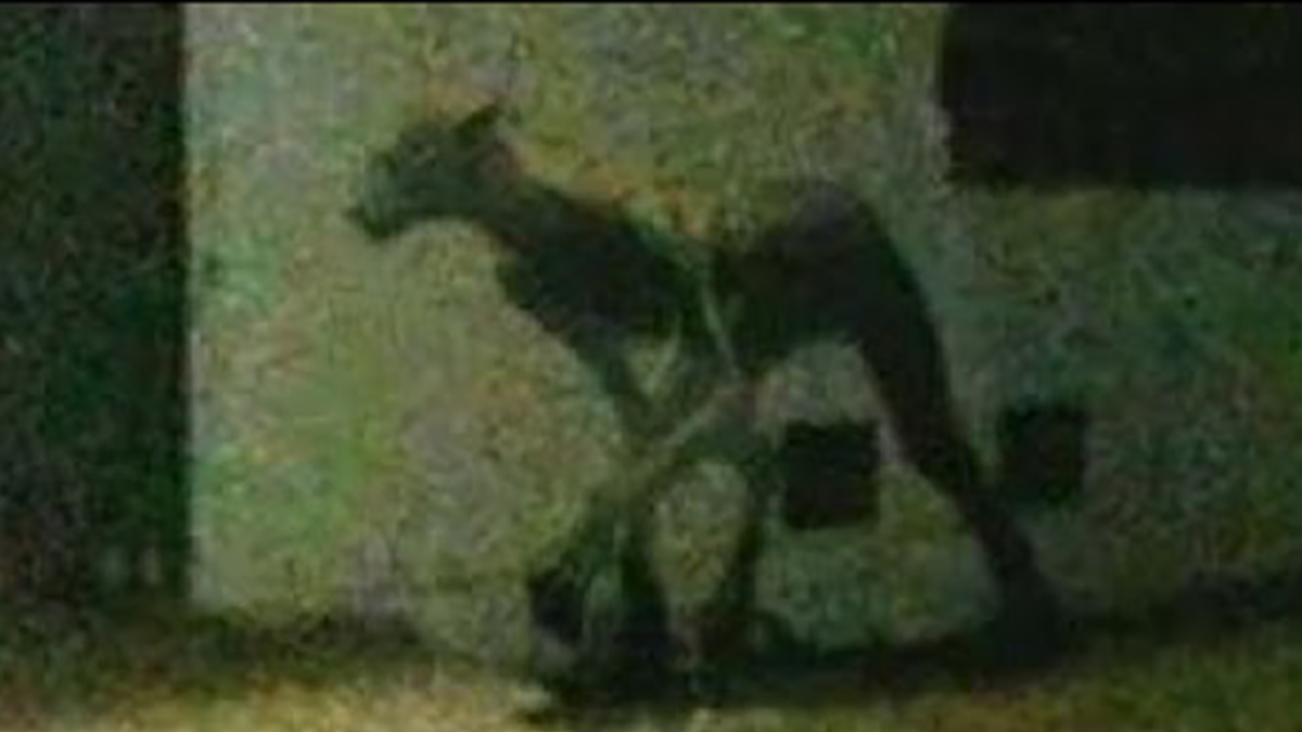 The blurry photo shows a large but thin four-legged animal that appears to be about seven-feet tall. It has a hunched back and a head similar to a horse's. Some people claim it's a demon, others are convinced it's a chupacabra, and many believe it is some kind of monster.