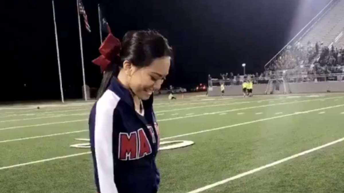 Her name is Ariel Olivar and people are wondering if she is some kind of sorceress after her stunt at a recent football game went viral.